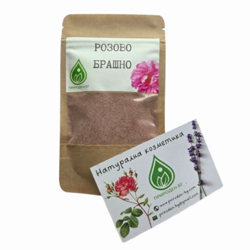 Розово брашно от Роза Дамасцена е 100% натурален продукт, произведен от изсушени и фино смлени листенца на българската маслодайна роза. Отличава се с естествен аромат, богат биоактивен състав и широко приложение в козметиката и хранителната промишленост.